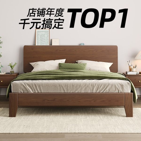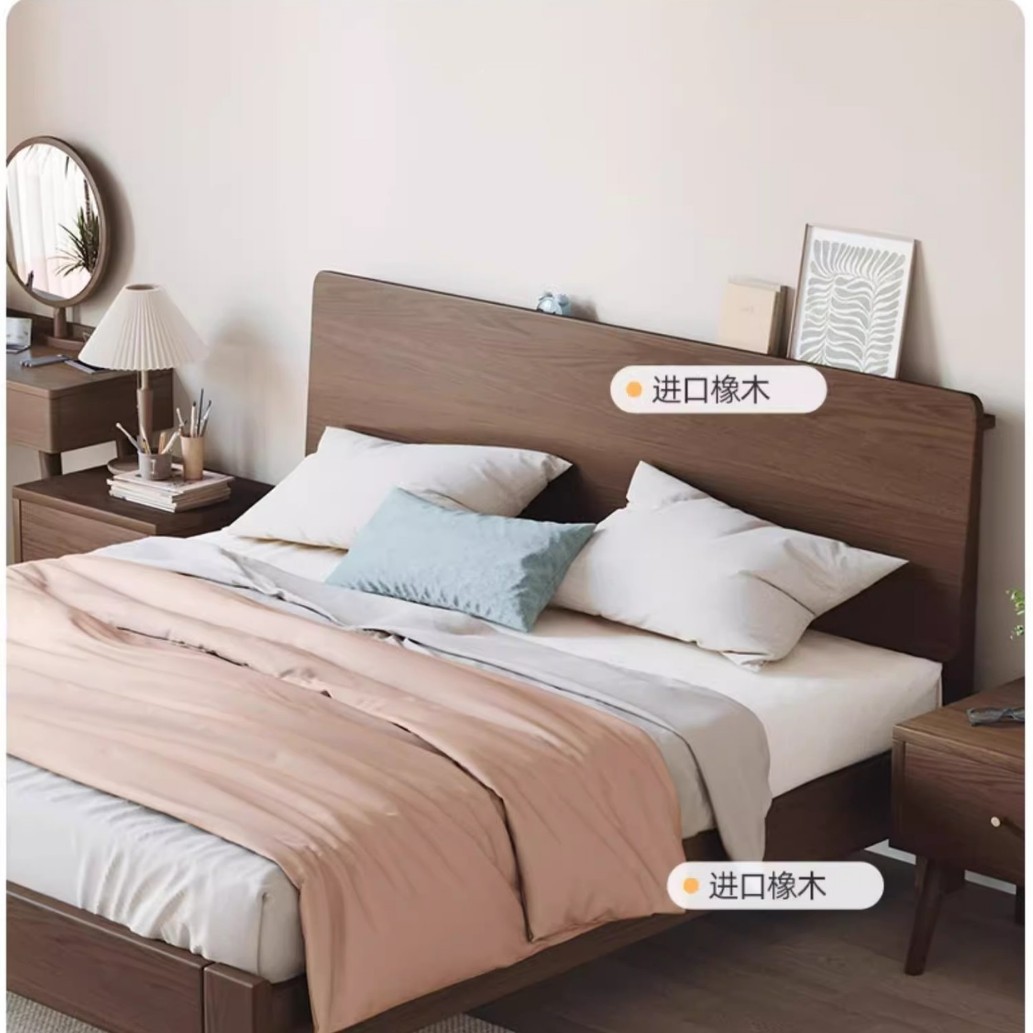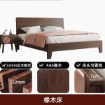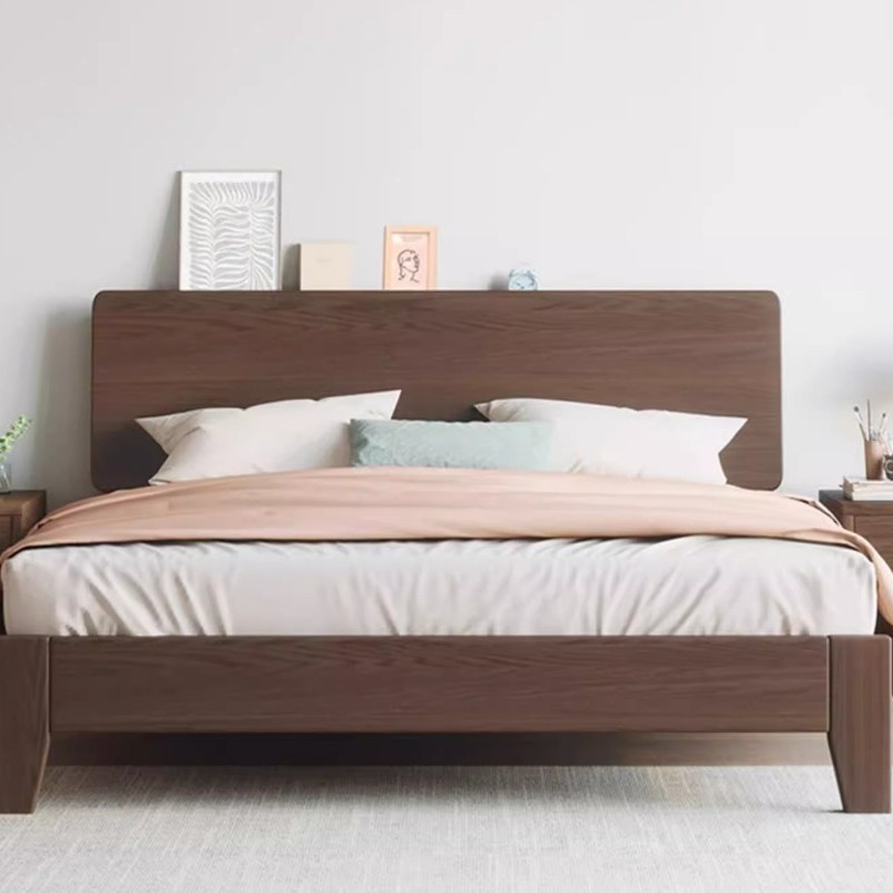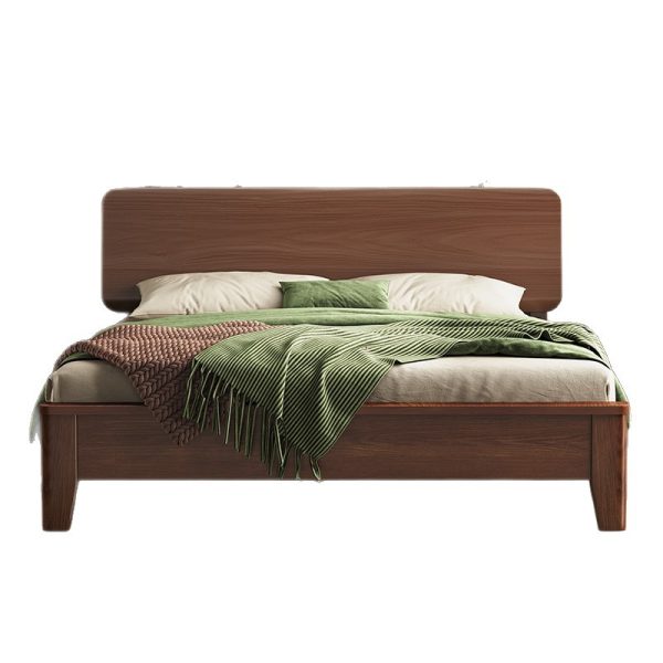 Bed solid wood bed modern simple 1.5m home oak bed frame walnut color